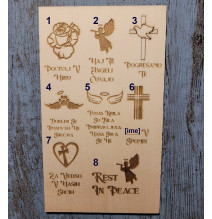 Motiv po izbiri priložene slike, nekateri motivi so personalizirani. Na vsako svečo pa lahko dopišemo tudi osebno sporočilo, ime pokojnika ali enobarvo sliko po izbiri.